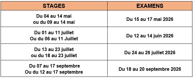 Je règle ci-dessous le stage GP N4 de 11 jours | Je règle ci-dessous les frais d’inscription à l’examen |