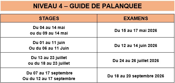 La formation s’adresse aux plongeurs titulaires du Niveau 3 (ou diplôme reconnu équivalent) désirant se préparer à l’examen guide de palanquée – Niveau 4 FFESSM.
